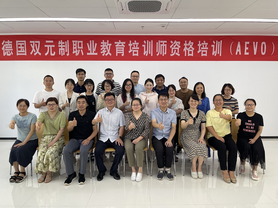 除了8月份两期AEVO培训之外,中德双元制学院还组织智能制造学院6名教师参加了6月12日至16日的AHK新能源汽车专业建设培训,组织经济管理学院8名教师参加了8月21日至25日的AHK工业商务专员考官培训,并推荐2名教师进入AHK工业商务专员考试委员会。在AHK新能源汽车专业建设培训中参训老师学习到德国新能源汽车技术和安全标准,并结合我国新能源汽车技术专业开展了数字化课程开发与行动导向教学设计;在AHK工业商务专员考官培训中参训老师学习到德国双元制“工业商务专员”专业教学要求和培训方案、考核重点、考试流程和结构、考试准备、组织和评分标准等内容,为我校“工业商务师”新职业人才培养方案、教学体系、考试目标等教学培训打下了良好的基础。